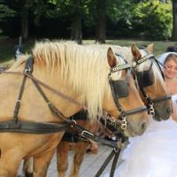 Notre attelage de chevaux aux crinières d'or se met à votre disposition pour le grand jour !