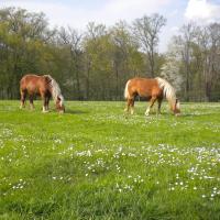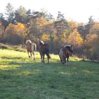 * Accueil de votre cheval ou poney en pension au pré avec abris naturels à la Ferme du Pré Fleuri,